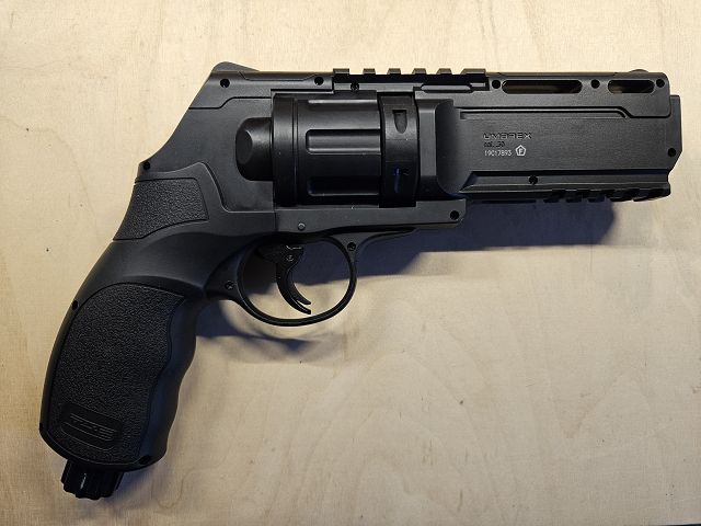 T4E UMAREX HDR 50 Home Defense Revolver, cal. .50, Originalverpackung mit Anleitung, Imbusschlüssel, 2te Magazin-Trommel, angefangene Dose mit Rubberballs (gut halb voll), angerissene Schachtel mit 4 CO2 Kapseln, Zustand siehe Bilder. Privatverkauf, daher keine Garantie oder Rücknahme.