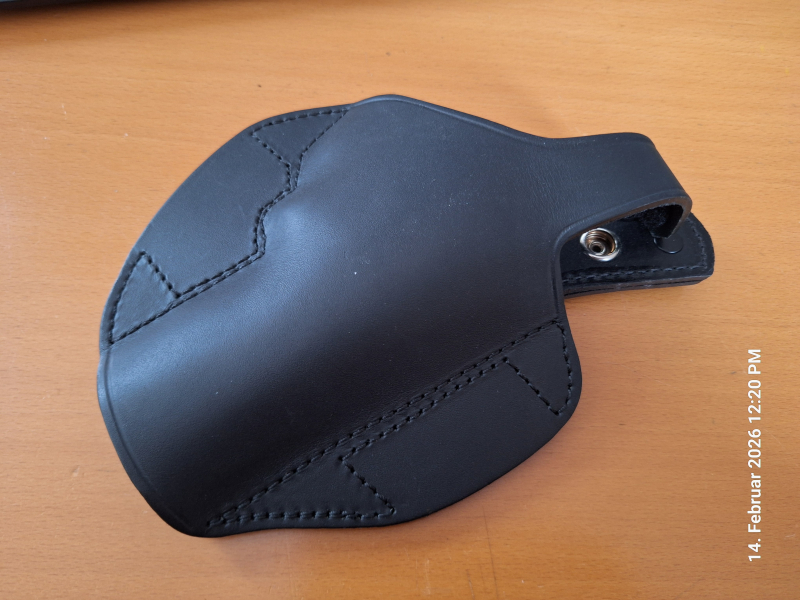 Sie bieten auf ein neuwertiges Gürtelholster der Firma AKAH Dieses beliebte Holster zeichnet sich durch eine verdeckte Trageschlaufe aus. metallverstärkter Thumbsnap, verlängerter Laufschutz, verdeckter Abzugschutz, Schwarzes Blankleder.