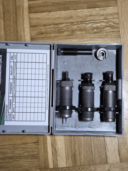 Verkaufe einen RCBS Hartmetallmatrizensatz Kal.45 ACP, 3-teilig, Kalibriermatritze mit Hartmetallring, Aufweitematrize und Setzmatrize mit Crimpfunktion und zwei Setzstempeln.Sehr wenig benutzt. Neupreis 130€.
