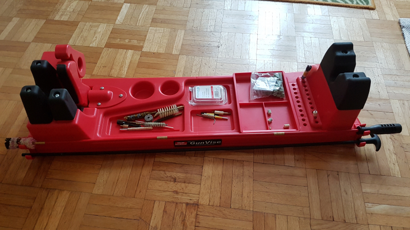 Verkaufe neuwertige Werkbank MTM Gun Vise mit Putzgarnitur und Ballistol Filzadapter