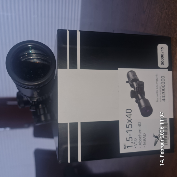 Ich trenne mich vom 1,5-15x40 NXT (DD Optics). Das Zielfernrohr ist super geeignet für Nachtsicht Vorsatzgeräte. Gebe es ab, weil ich die dazu gehörige Waffe verkauft habe. Es hat im unterem Bereich ganz leichte Spuren von der Montage, aber keine Dellen im Tubus (Montage war mit 1,2 nm angezogen und nicht geklebt). Gebe das Glas als neuwertig ab. Der Lieferschein der Herstellerfirma ist dabei.