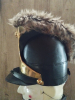 Nachbau eines Kurpfalz-bayerischen Rumford Kaskets Lederhelm ca 1780 - vom Schuhnagel im Schwarzwald hergestellt - Ochsenleder handgezogen , handvernäht , Stirnplatte massiv Messing - Leder / Leineneinsatz - Helm größenverstellbar bis ca. 60 - Kunstfellraupe - NEU - EINZELSTÜCK