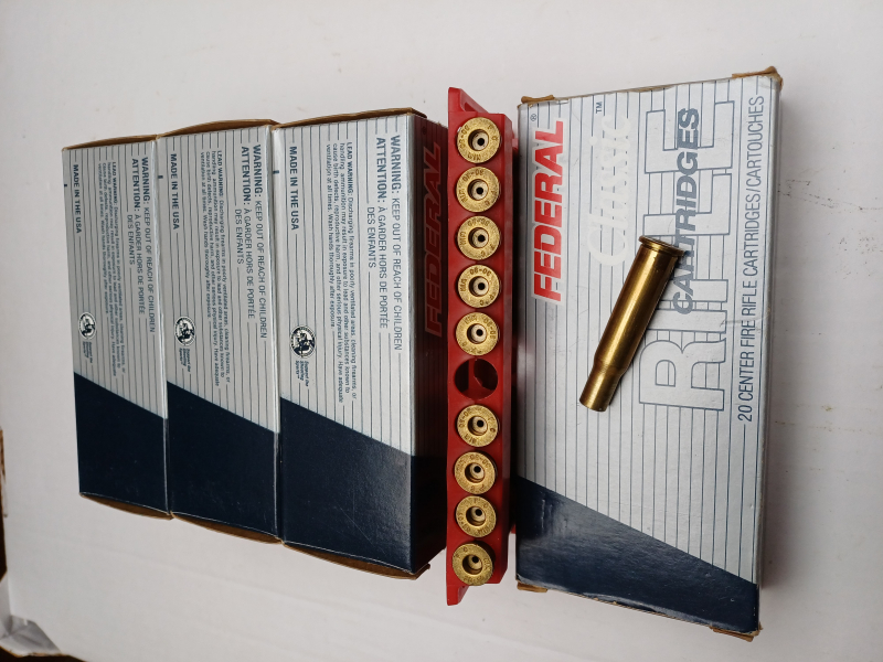 Sie bieten auf 3 Packungen mit je 24 Hülsen (1-2 mal wiedergeladen) und auf 1 Packung mit 20 Hülsen , insgesamt 92 Hülsen von Federal. Die Hülsen sind ohne Zündhütchen, jedoch nicht gereinigt. Viel Spaß beim bieten.