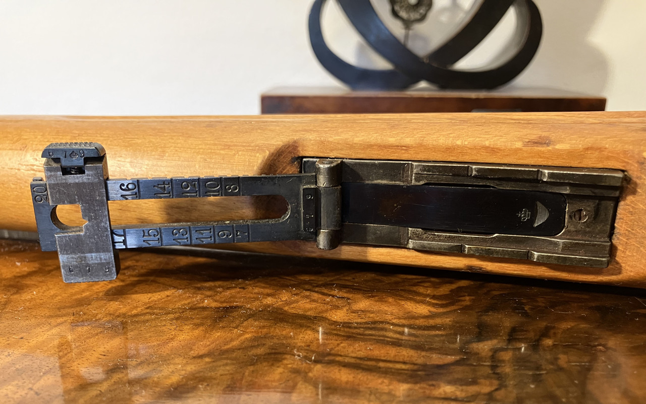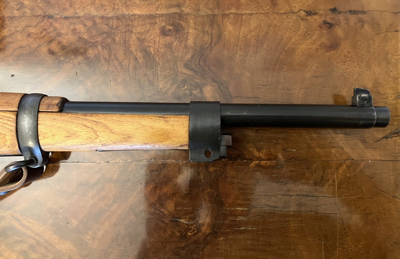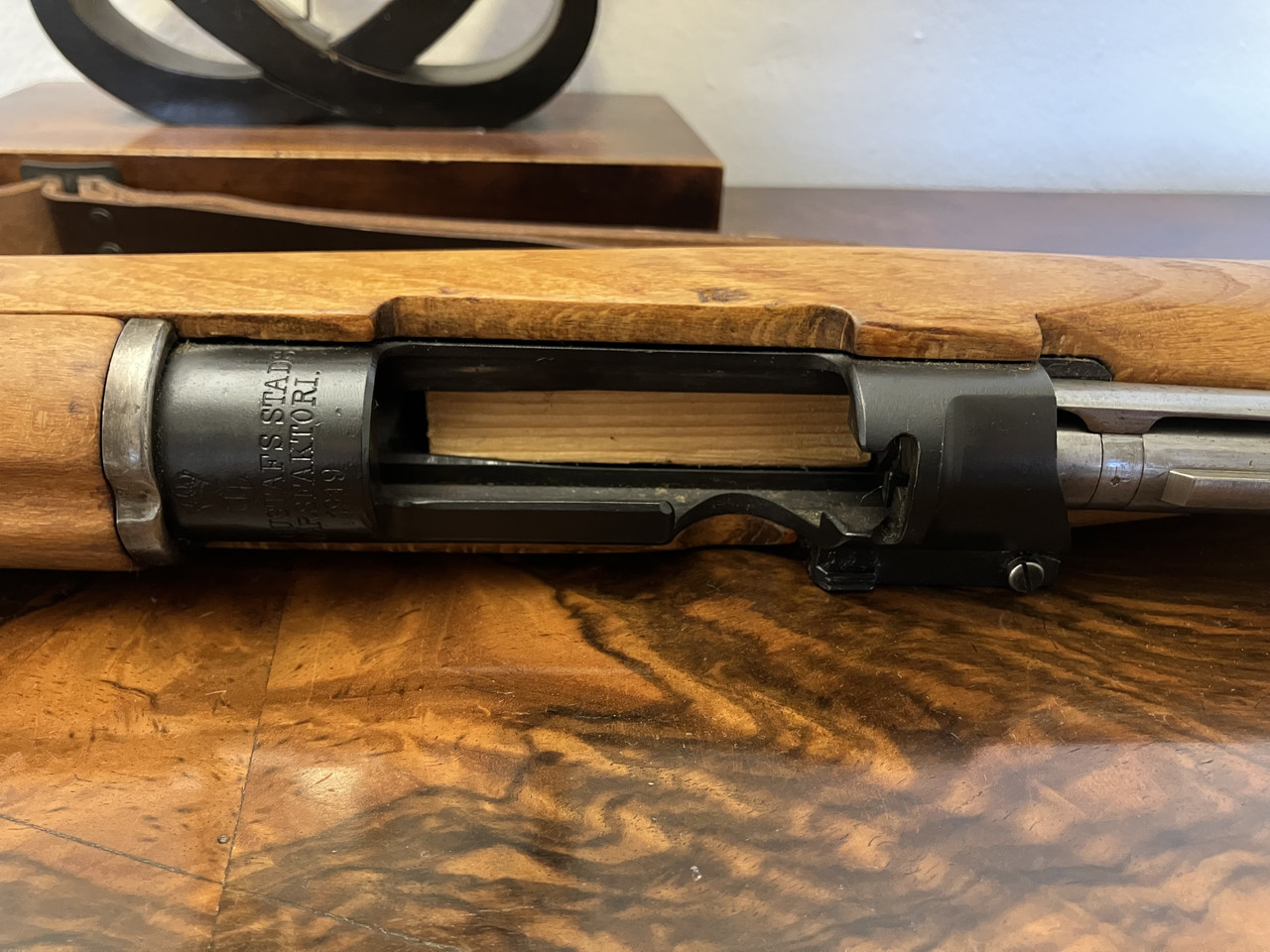 Die Waffe wurde zum Glück nur sehr oberflächlich zum Einzellader "umgebaut". Lediglich ein Holzblock wurde in den Magazinkasten eingelegt um das Magazin zu füllen. Durch Öffnen des Magazindeckels fällt der Holzblock sofort problemlos aus der Waffe. Erfreulicherweise wurden keinerlei Verschweißungen oder ähnliche Vergewaltigungen an der Waffe vorgenommen, sodass der Käufer ohne handwerklichen Aufwand, mit wenigen Griffen, die Waffe wieder in den Zustand eines Mehrladers umwandeln kann : - )