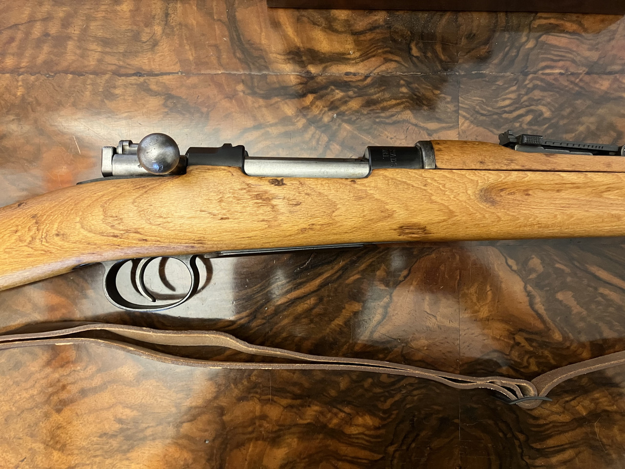 Versteigert wird der abgebildete Karabiner M96/38 in der beliebten 6,5x55 Schwedisch Mauser. Aufgrund der Lauflänge von 61cm passt die Waffe, im Gegensatz zum überlangen M96 Schwedenmauser, in jeden normalen Waffenschrank : - )