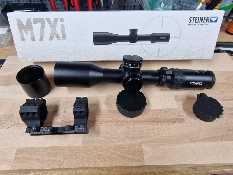 Verkaufe gebrauchtes,aber neuwertiges Steiner M7Xi 2,9-20×50,Tremor 3 Abs.,beleuchtet.Keine Kratzer,alles top. Mit dabei ist eine Verkantungslibelle von Accuracy 1st, eine Montage von LaRue Tactical, eine Sonnenblende, die Schutzkappen,Beschreibung und Originalverpackung.Versendet wird versichert über DHL.