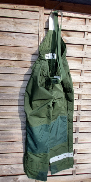 Versteigert wird eine Wetter-/ Kälteschutzhose des BGS. Gore-Tex, Größe 110 (56 lang, XXL). Fa. Wattana, sehr hochwertige Qualität und richtig warm, tolle Ansitzhose. Beine mit langem Reißverschluss zum leichten Überziehen, unten reflektierende Streifen zum Ausknöpfen. Hosenträger. Passende Jacke in weiterer Auktion.