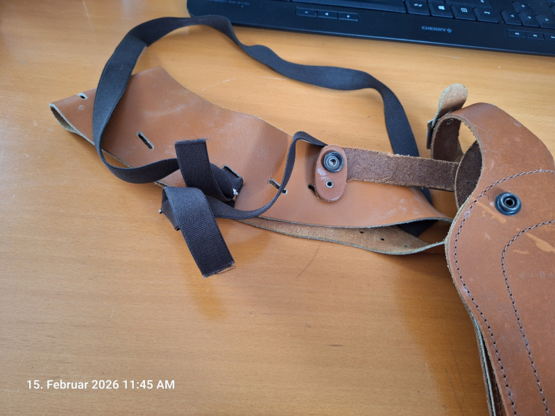 Zum Verkauf steht ein braunes Schulterholster, voll verstellbar und anpassbar an jede Körpergröße.
