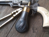 Seltene, kleine Pulverflasche aus England geprägt mit "Colts Patent". Passend für Baby Dragoon oder Colt Pocket im Kaliber .31