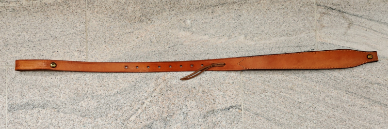 Ich biete an einen optisch sehr ansprechenden, gebrauchten Gewehrriemen aus robustem, dickem hellem Leder in sog. Kobra-Form, Länge (wie auf dem Foto): 94,5 cm, Breite: 5,5 cm / 2,5 cm.