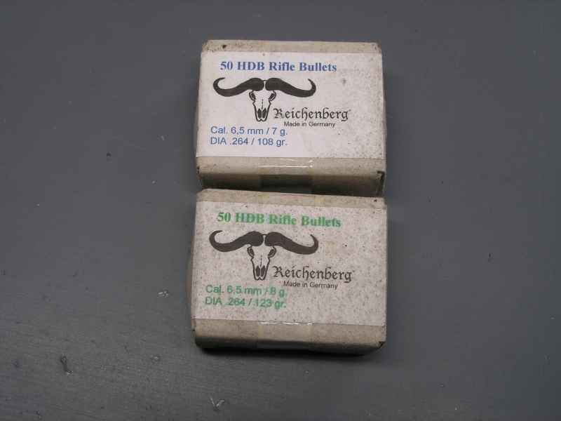 2 x Reichenberg HDB-Geschosse in ungeöffneter Original-Verpackung Kaliber 6,5 mm / .264. Privatverkauf ohne Garantie, Gewährleistung oder Rücknahme.