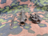 Der Zustand ist deutlich gebraucht mit massiver Oxidation, Lochfraß und Materialabtrag durch lange Lagerung im Erdreich. Bewegliche Teile sind fest, keine Funktionsfähigkeit gegeben. Es handelt sich um reine Relikt- bzw. Sammlerstücke.