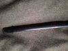 Scheide überlackiert, war wohl mal an einer Stelle geknickt, ganz kleine Löcher an den Rändern, auf der Rückseite auch nur sichtbar, wenn man genau hinsieht. Wurde repariert, hält auch super, schmälert aber natürlich den Wert, deshalb auch niedriges Anfangsgebot.