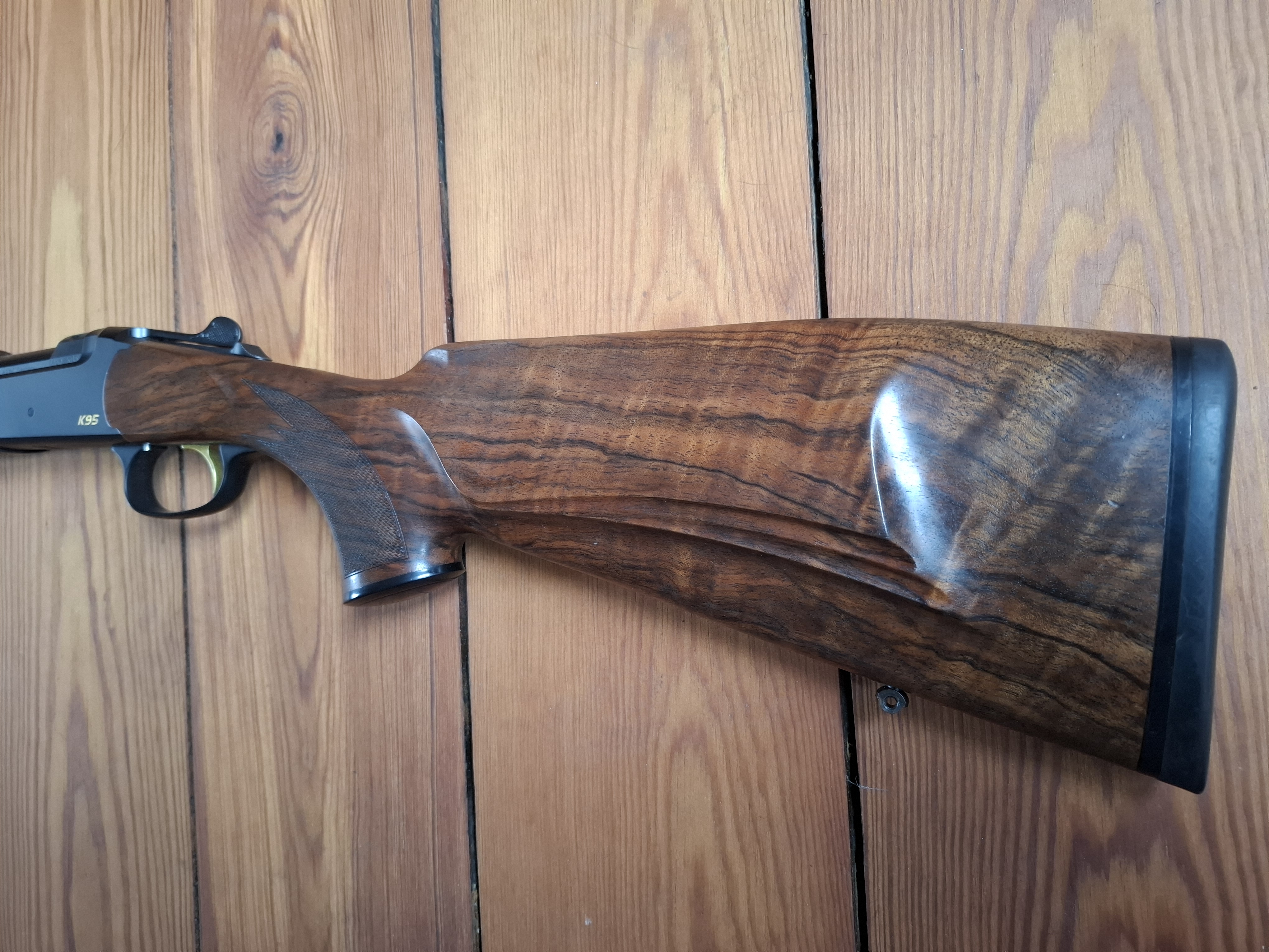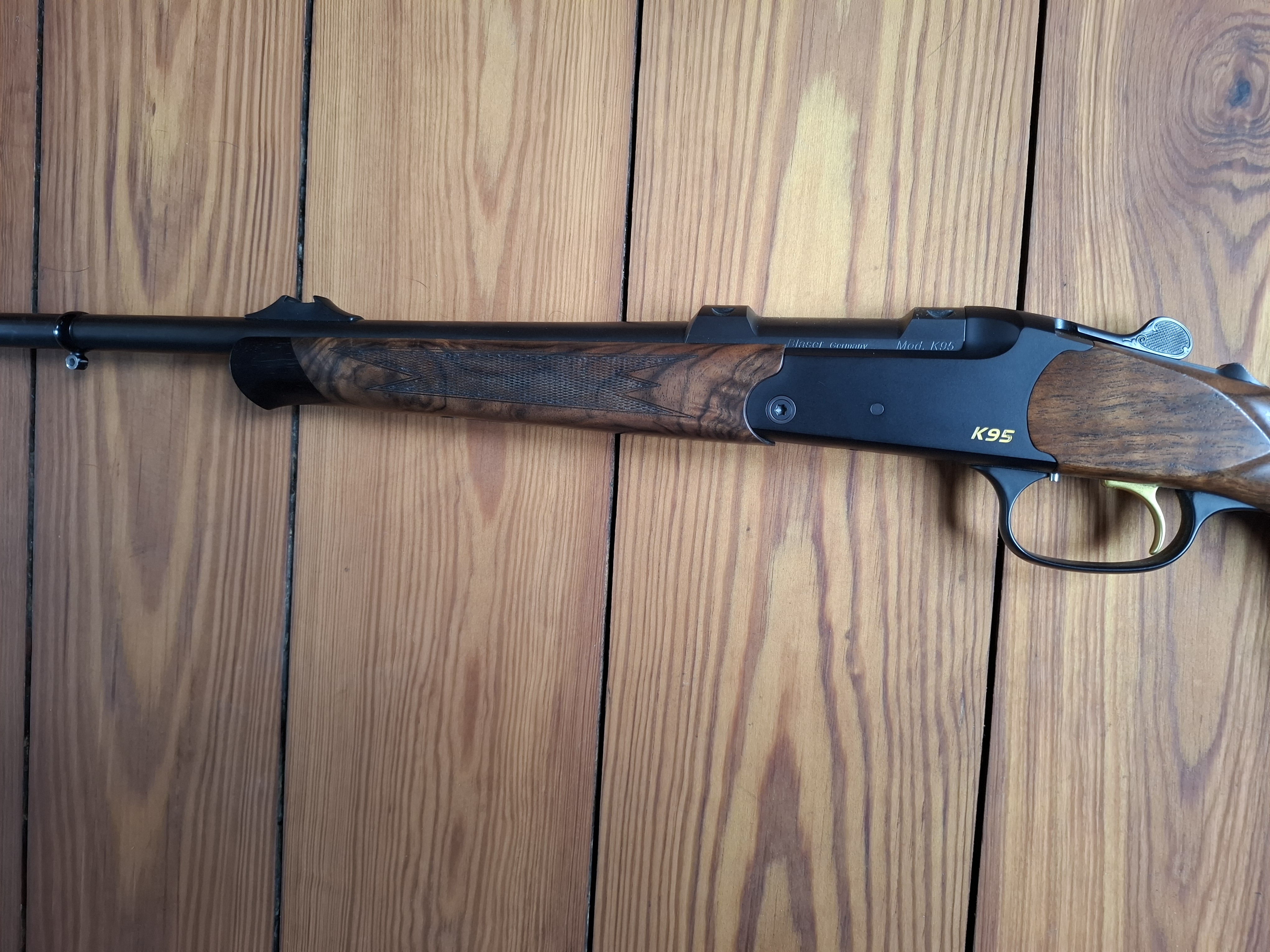 Ich verkaufe hier wegen Überbestand meine Blaser K95 in der Black Edition im Kaliber 7x65R in Holzklasse 6. Die Waffe ist in einem sehr guten Zustand und wurde jagdlich geführt. Die Schussleistung ist Blaser-typisch prima. Der Schlossgang ist saugend-fest und quasi „wie am ersten Tag“. Passend zum schwarzen Systemkasten sind der Verschlussblock und der Abzug goldfarben.