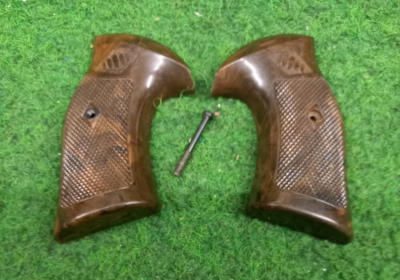 Aus einer großen Sammlung wird folgender Artikel wird angeboten. Griffschalen für Mayer & Söhne Kipplaufrevolver ohne Risse und Beschädigungen. Erhaltung siehe Fotos.