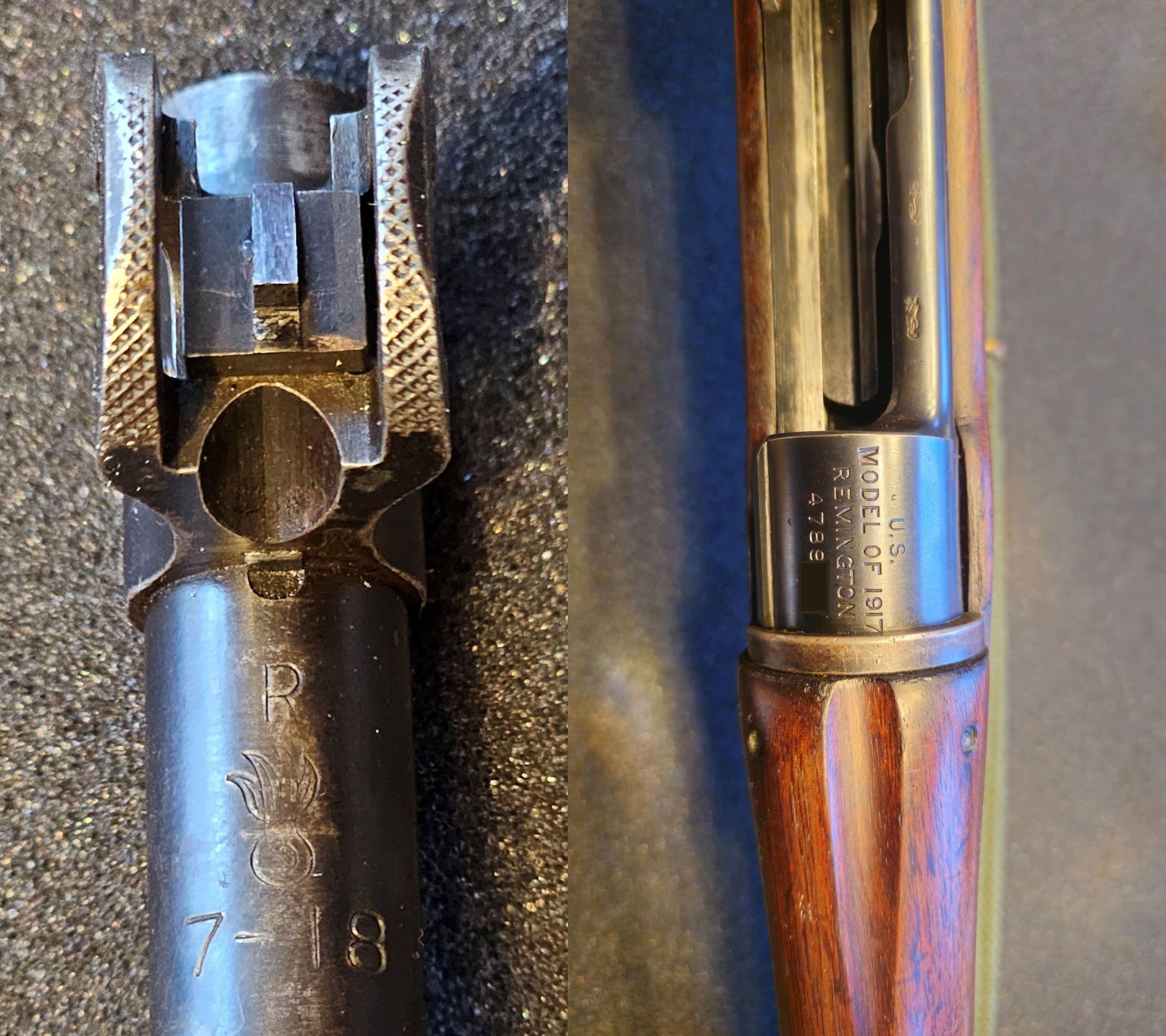 • Markierungen & Originalität: Der Lauf ist korrekt mit „R 7-18“ gestempelt (Remington, Juli 1918). Er ist somit zeitgenössisch korrekt und authentisch für dieses System.