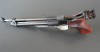 Die Pistole schießt sehr präzise. Der Abzug ist sehr fein einstellbar. Die Pistole ist technisch und optisch in sehr gutem Zustand. Sie ist dicht, und sie hat nur nur sehr geringe Gebrauchsspuren. Die Pistole wurde umgebaut. Original Griff ist nicht mehr vorhanden. Dafür hat sie einen sehr schlanken dunkelroten Edelholz-Griff aus Kokobolo-Holz bekommen, mit dem die Pistole sehr tief in der Hand liegt. Der Griff ist sauber eingepasst und hat eine sehr schöne Oberfläche. Der veränderte Spannhebel besteht aus hochfestem EN AW-7075 Aluminium und ist hochglanzpoliert. Es ist eine Einzelanfertigung. Der im Gegensatz zum Original etwas kürzere Hebel bildet geschlossen gleichzeitig den Abzugbügel und gibt der Pistole eine sehr schöne elegante Silhouette. Das Spannen der Pistole mit dem verkürzten Hebel ist ohne großen Kraftaufwand möglich.