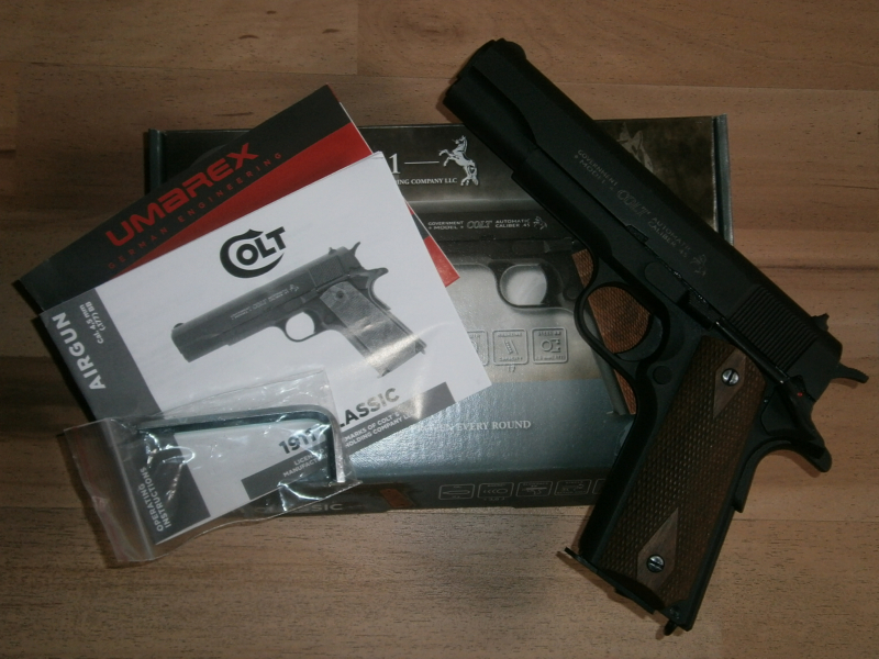 Hallo zusammen, biete euch eine halbautomatische 1911er Co2 Pistole von Colt/Ux mit Original Markings & wunderschönen Holzgriffschalen. 18 schüssiges All in one Magazin, schwarz matte Beschichtung.