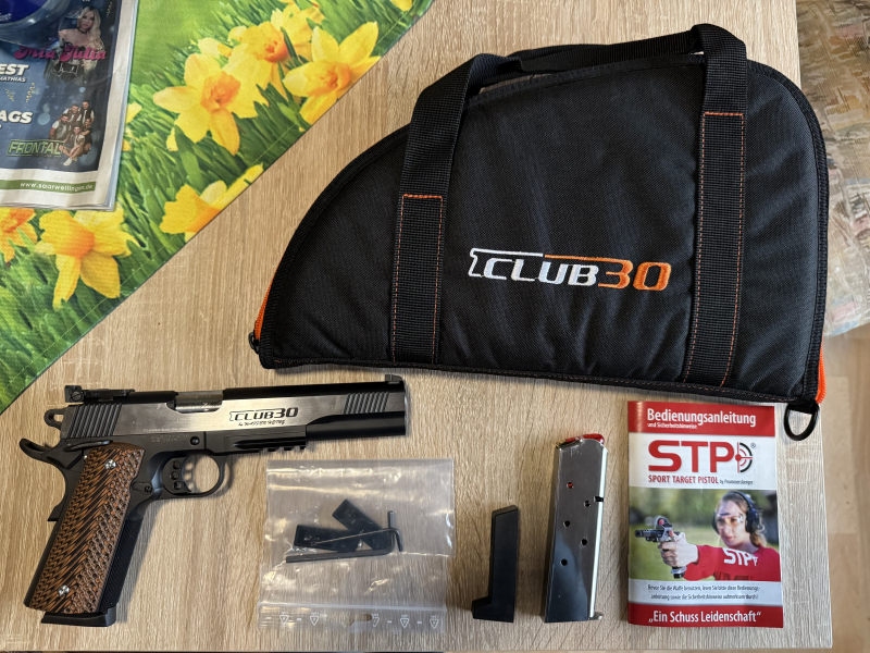 Ich biete hier im Auftrag für einen Schützenkollegen wegen Krankheit folgende Waffe an. Kurzwaffe CLUB 30 C30 Mod.1911 6.0 im Kaliber .45 Auto mit Picatinny Schiene. Die Waffe wurde im August 2025 Neu beim Club30 Mitglied Waffen Heinz in Friedrichsthal gekauft. Mit der Waffe wurden maximal 50 bis 100 Schuss geschossen. Die Waffe wird wegen schwerer Krankheit und Aufgabe des Schießsports verkauft. Sie wird mit allem Zubehör wie auf den Bildern zu sehen ist verkauft. Der Zustand ist nahezu Neuwertig. Rechnung vorhanden knapp 2000€.