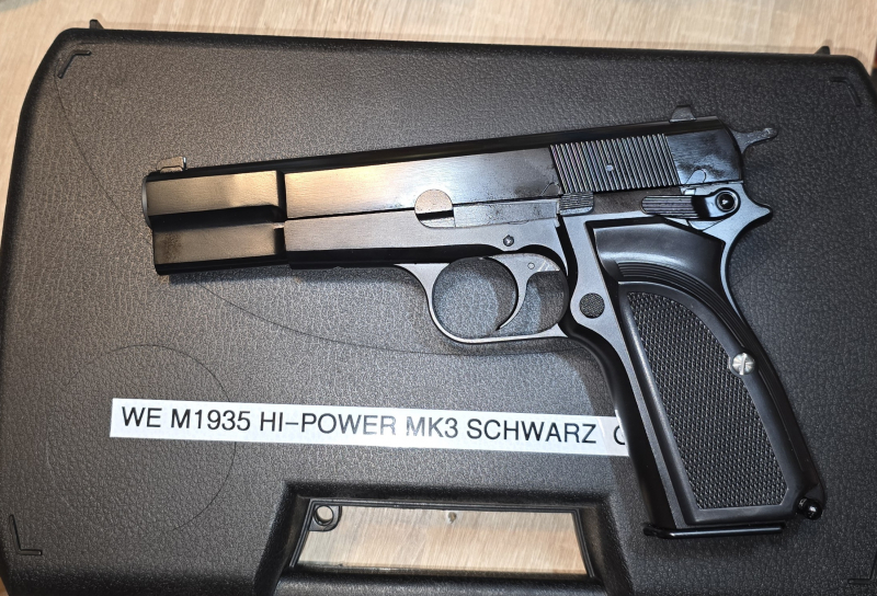 Hallo, biete hier eine WE M1935 HI-Power MK3, 6mmBB, gas an, in schwarz. Die waffe hat Blowback, hat keine gebrauchspuren, waffe ist aus Metall, sie ist dicht und hat ein F zeichen. Mit dabei ein Waffenkoffer. Was aussieht wie Flecken auf der waffe sind nur Öl Spuren von der Pflege. Waffe ist nur probe geschossen, zwecks funktion und Dichtigkeit.