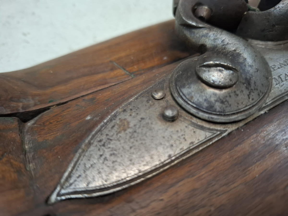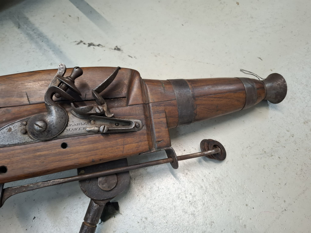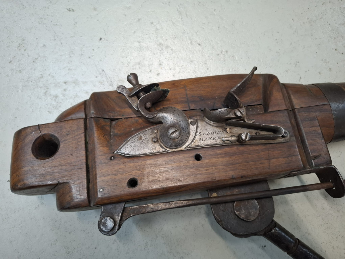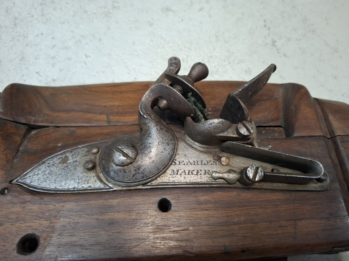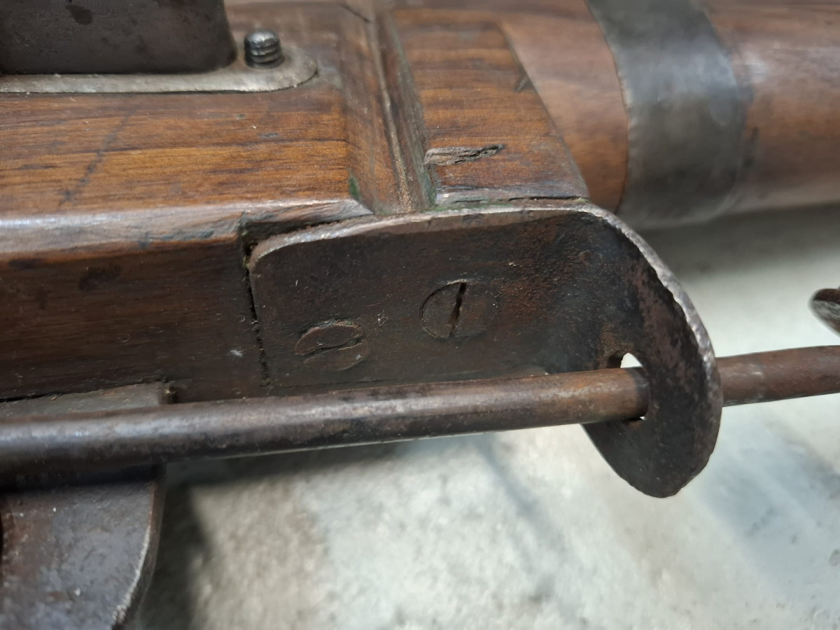 seltene Friedhofsfalle Perkussion, vermutlich England aus Sammlernachlass Steinschlosszündung mit Zugauslösung