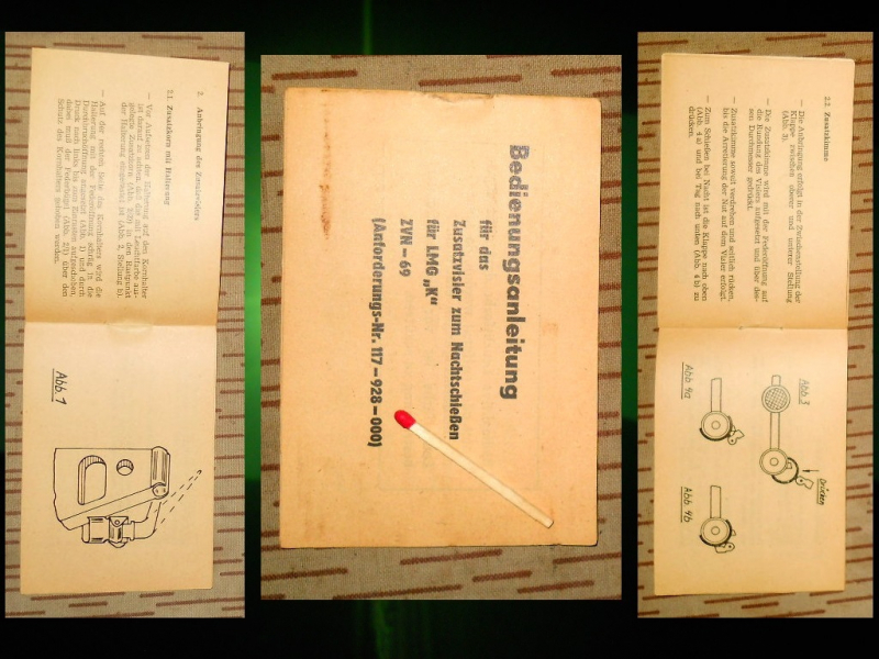 ...Beschreibung: ... orig. Bedienungsanleitung/Heftchen zu DDR/NVA Nachtvisier für LMG-K Kalaschnikow RPK ... Zustand siehe Bild ... --- Bei Versandkosten von 2,95euro (Großbrief/BüWa) bekommen wir KEINE Tracking-Nummer!!! Ein Versand mit Tracking-Nummer (...dann 5,40euro), kann auf Wunsch des Käufers vorgenommen werden. (...bitte kurze Info per Mail) ... --- ... Dies ist eine Privat-Auktion. Keine Rückgabe, Garantie, Nachverhandlung o. ähnl. --- Versand erfolgt nach Zahlungseingang (und ggf. Altersnachweis), meißt binnen der nächsten 5 Werktage --- Bezahlung ausschließlich per Vorkasse/Überweisung (die Kontodaten erhalten Sie in der egun-Kaufmail) --- PayPal-Zahlung ist NICHT möglich !!! --- Bitte „Allgemeine Hinweise d. Verkäufers“ zum Thema Versand beachten --- Bitte bieten Sie nur, wenn Sie mit diesen Bedingungen einverstanden sind.