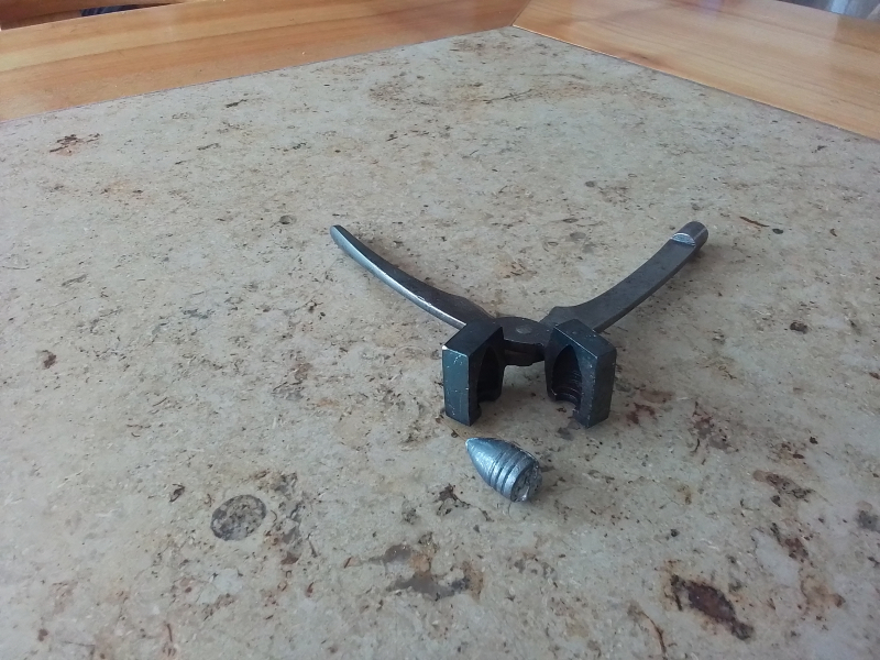 Eine org. Kugelzange für Pistole oder Revolver. Cal. ca 11 mm.Spitzgeschoss mit integriertem Ladearm und Angussabschneider, gereinigte Altersspuren, voll funktionsfähig. Das Geschoss hat Fettrillen. Ein Abguss ist in der Auktion enthalten. Rest siehe Bilder. VerkaufsbedingungeN SIEHE ID MYGUN.