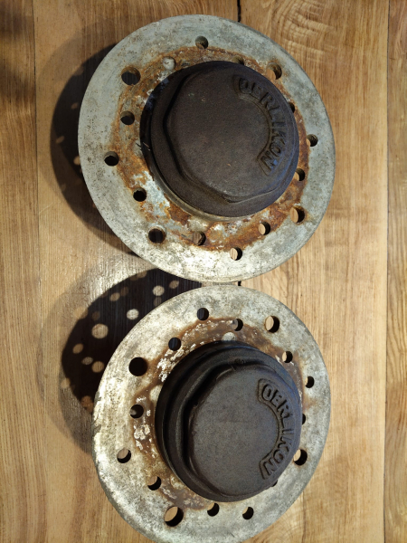 2 Radnaben vermutlich von der Oerlikon Flak oder Panzerbüchse. Auf der Rückseite noch original Sandfarbe. Rest siehe Bilder!