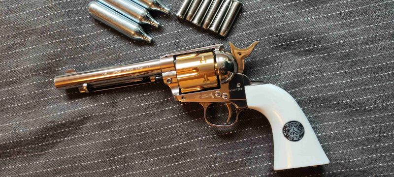 Gekauft 10.2024 und in Tadellosem Zustand. Keine Kratzer vorhanden und absolut dicht und funktionsfähig. Der Revolver verfügt über einen gezogenen Lauf und ist auf 8m erstaunlich präzise und trifft fleck mit der fixen Visierung. Abzug bricht sehr klar und ist wirklich top. Der Revolver kommt in der original Verpackung inkl. Ladehülsen und drei Co2 Kartuschen.