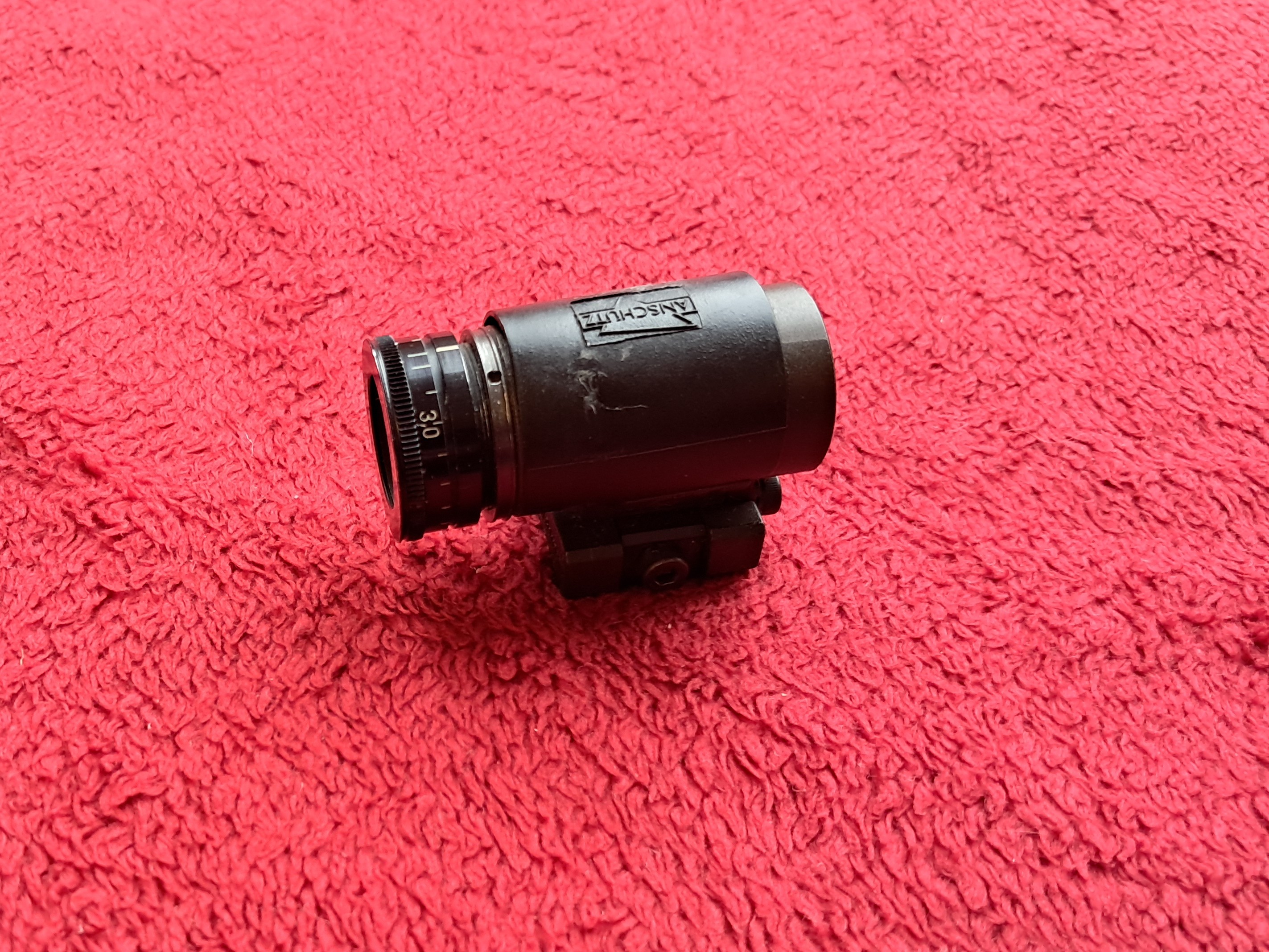 Ich versteigere hier einen gebrauchten Anschütz Korntunnel 6832 (schwenkbar) inkl. verstellbarem AHG Iris-Ringkorn 3,0 - 5,0 (?).