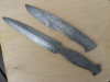 Ich habe hier 2 Damastklingen, sie sind neu habe jedoch Gebrauchsspuren wie leichten Flugrost. Die Klingen haben eine Lände von 20 u 29 cm ( incl ) Griff und sind nicht gehärtet.