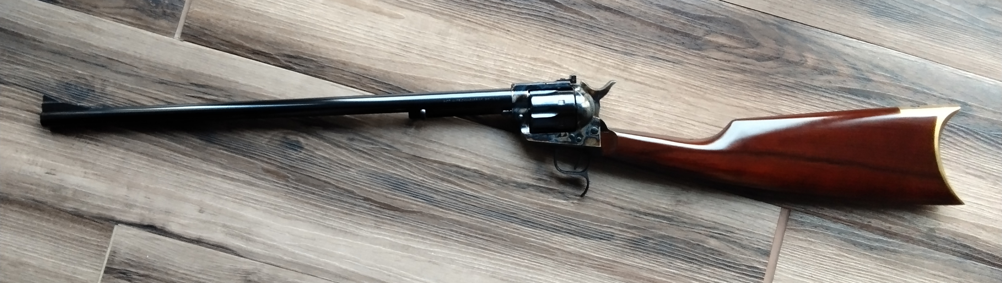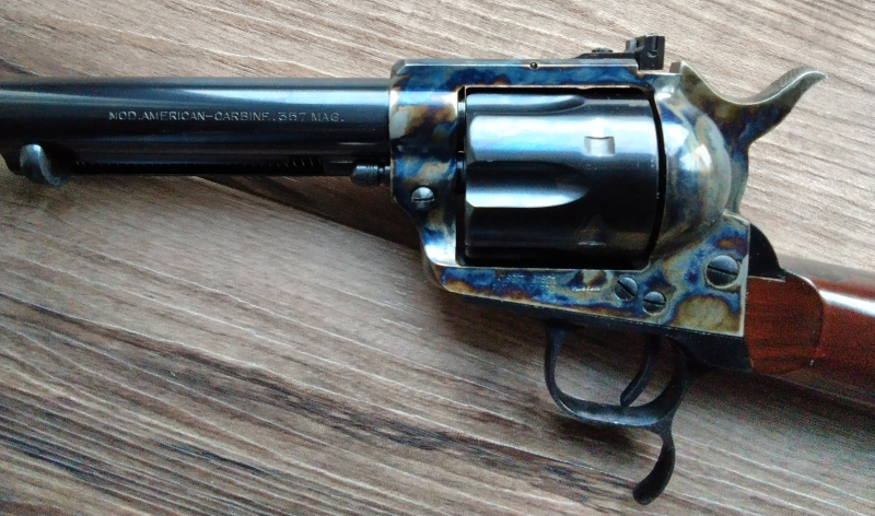 Verkaufe einen Uberti Cattleman Carbine Revolver im Kaliber .357/.38 Sp. im sehr guten Zustand, einzig die Trommel hat leichte Laufspuren.
