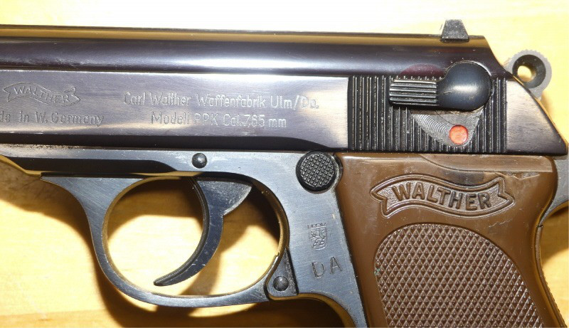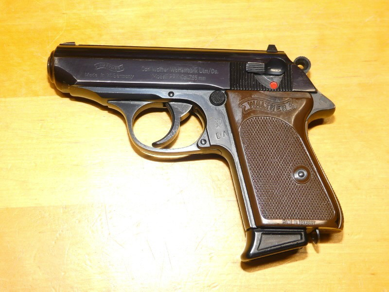 Wir bieten hier im Kundenauftrag eine Walther PPK 7,65 Browning mit Stahlgriffstück, Holster mit den Initialen des Beamten, welcher die Waffe wohl dienstlich nutzte. Hinter dem Abzugbügel befindet sich der Abnahmestempel und die eingeschlagenen Buchstaben DA. Der staatliche Beschuss erfolgte 1972. Sehr guter Gesamtzustand, mit ein paar Nutzungsspuren, welche durch das Tragen im Holster hervorgerufen sind. Siehe Foto. Informationen zu Ihren Verbraucherrechten etc finden Sie unter "Mygun". Bei Fragen, tagsüber zur normalen Geschäftszeit: 09231 72900 oder per Email: info@pickert-jagd.de / Auslandsporto bitte vor der Gebotsabgabe anfragen!