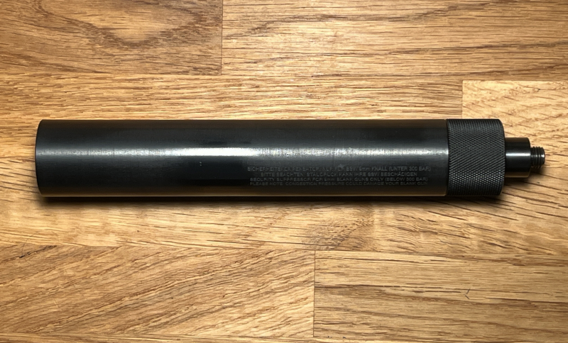 Biete den genannten Schalldämpfer aus Vollstahl – passend für verschiedene – unten beispielhaft aufgeführte Schreckschusswaffen. Die Fotos mit der abgebildeten Erma EGP 75 S dienen nur der Veranschaulichung – die entsprechende Waffe ist NICHT Teil des Angebots, sondern nur der Schalldämpfer. Der Neupreis betrug 229,00 €.