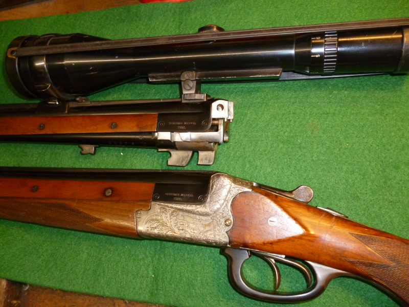 Bockbüchsflinte Kal. 16/70;7x65R Lauflänge 65 cm, Schaftlänge 37 cm, montiert mit Schmidt und Bender 2,5-10x56 Abs.1