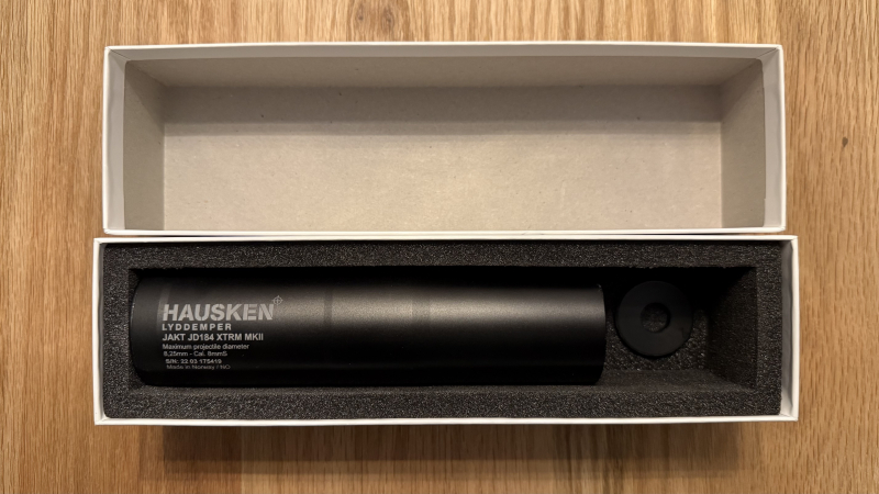 Angeboten wird ein Schalldämpfer Hausken Jakt JD184 XTRM MKII bis Diameter 8,25mm bzw. Kal. 8mmS (.323) mit M15x1 Gewinde. Der Schalldämpfer hat eine Belastung von unter 50 Schuss, dementsprechend neuwertig ist der Zustand. Von außen sind keine nennenswerte Gebrauchsspuren zu erkennen und auch innen sind die Lamellen in einem sehr guten Zustand.