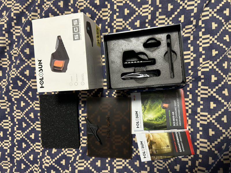 Die Originalverpackung sowie sämtliches Zubehör sind selbstverständlich enthalten. Die Rechnung von Holosun kann auch beigefügt werden. Der Versanderfolgt versichert über DHL.