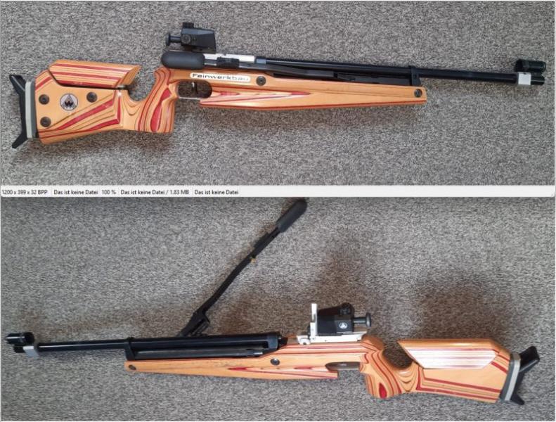 Um die Paketlänge zu reduzieren, wird der Holzschaft und die eigentliche Waffe auseinander geschraubt. Dies geschieht durch zwei Schrauben und ist ganz einfach wieder zusammen zu schrauben.