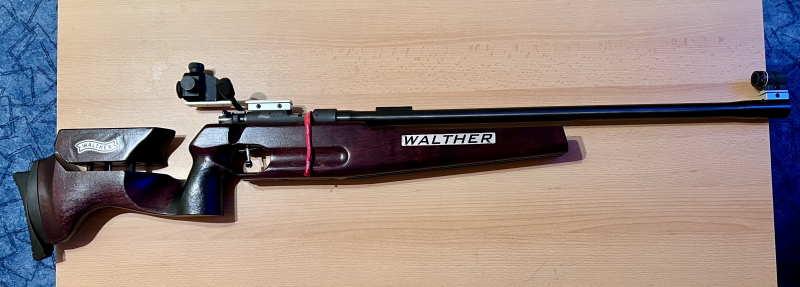 Hallo, ich biete hier mein gebrauchtes KK-Gewehr Walther KK 100 an. Es hat schon leichte Gebrauchsspuren, schießt sich aber wirklich super und präzise.