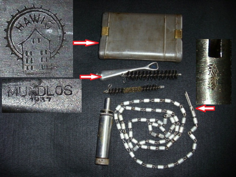 Vollständig, Behälter Herstellerzeichen "HAWIG", Hülsenkopfwischer mit Herstellerzeichen Mundlos 1937 - Kette WaA usw. sehr guter Zustand