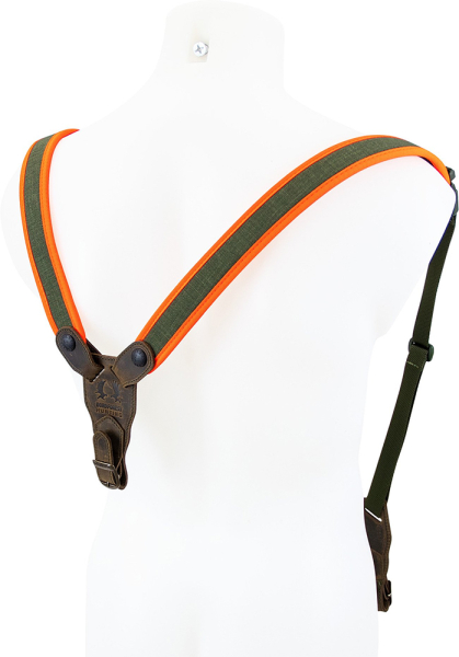 Für zusätzliche Sicherheit sind die Tragegurte in Orange abgesetzt. Der Nordforest Hunting Rucksackgewehrriemen Neopren hat wertige Lederdetails.