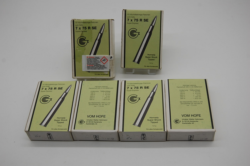60 Patronen Kal 7x75 R Vom Hofe 9g Hornady Super Shok Tipped