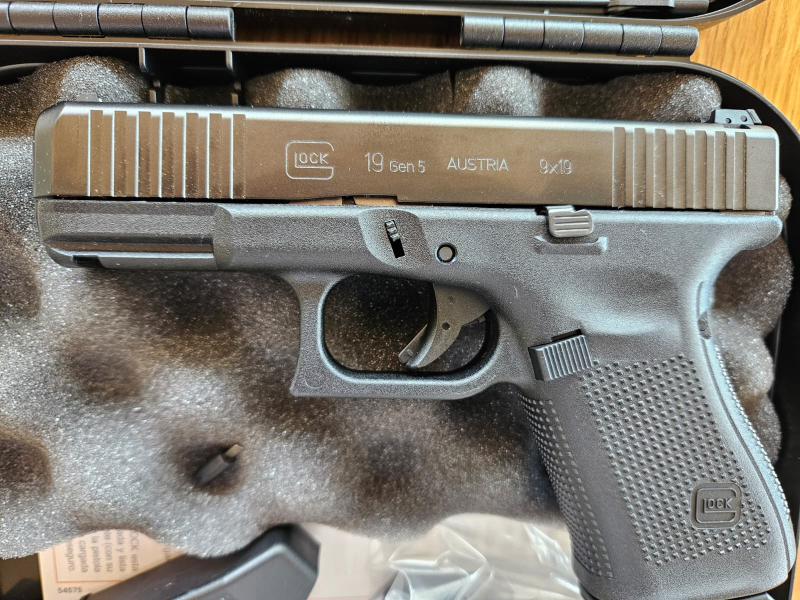 Verkaufe eine Glock 19 Gen5 FS inkl. Glockkoffer und Reservemagazin. Die Pistole hat 25 Schuss durch und wird verkauft, da sie mir nicht liegt und ich auf eine Glock 48 umsteigen will.