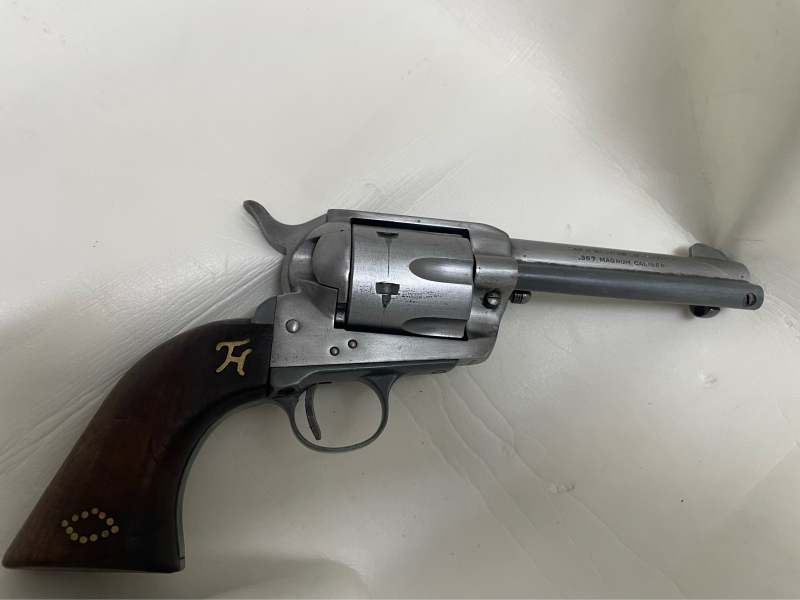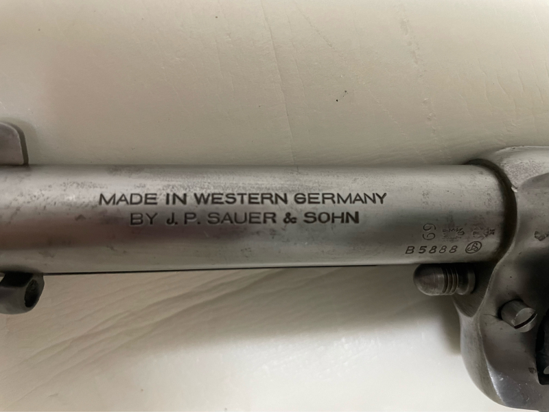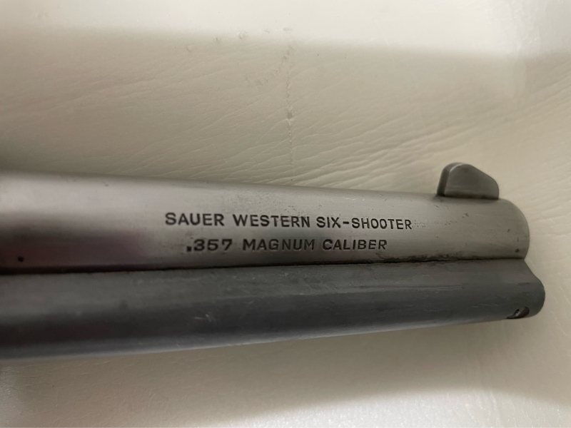 Verkaufe einen Westernrevolver von Sauer&Sohn cal. 38/357 Mag., gebraucht und guter Zustand (Bilder). Lauf Länge ist 4 ¾ Zoll. Privat Verkauf keine Rücknahme / Umtausch. Verkauft wird NUR an Selbstabholer, Standort ist bei Dresden. Habe in einer anderen Auktion passende Mexicanische Griffschalen aus Silber eingestellt!