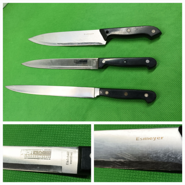 3. GROßE Messer --- Zustand : Gebraucht. Habe die Küchen Messer auf dem Dachboden entdeckt. Zu Schade zum Entsorgen. Klingen sollten geschärft weden. Griffschalen sind Teilweise Mangelhaft. Solche Messer findet man heute nicht mehr. Viel Spaß beim Bieten. Bitte beachten Sie meine anderen Auktionen auch. Die Haftung auf Schadensersatz wegen Verletzungen von Gesundheit, Körper oder Leben und grob fahrlässiger und/oder vorsätzlicher Verletzungen meiner Pflichten als Verkäufer bleibt uneingeschränkt. Verkauf Ausdrücklich unter Ausschluss jeglicher Sachmängelhaftung / Keine Rücknahme. Ich biete keine Sammelbestellungen an und auch keine Haustür Geschäfte. Jeder Artikel wird versendet. Bei Fragen Telefon: 07356-9509284 ----!!!---- KEIN internationaler Versand (NO international shipping) MFG