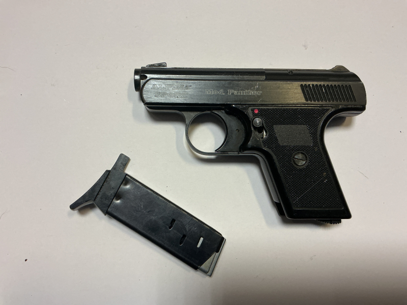Ich biete diese Schreckschusspistole, Alpina Sport Mod Panther 9mm, zum Verkauf an. Die Pistole stammt aus meiner Sammlung, ist gebraucht, wurde aber von mir nicht benutzt. Der Trockentest verlief unauffällig (sie lässt sich spannen und abdrücken)