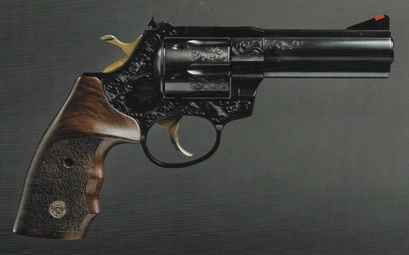 Seltener STEEL COP Ganzstahl-Revolver 4" brüniert, Gravur, Vergoldung, Vitrinenstück, ungeschossen, siehe Bilder, Sondermodell wird nicht mehr hergestellt, wird kaum noch angeboten
