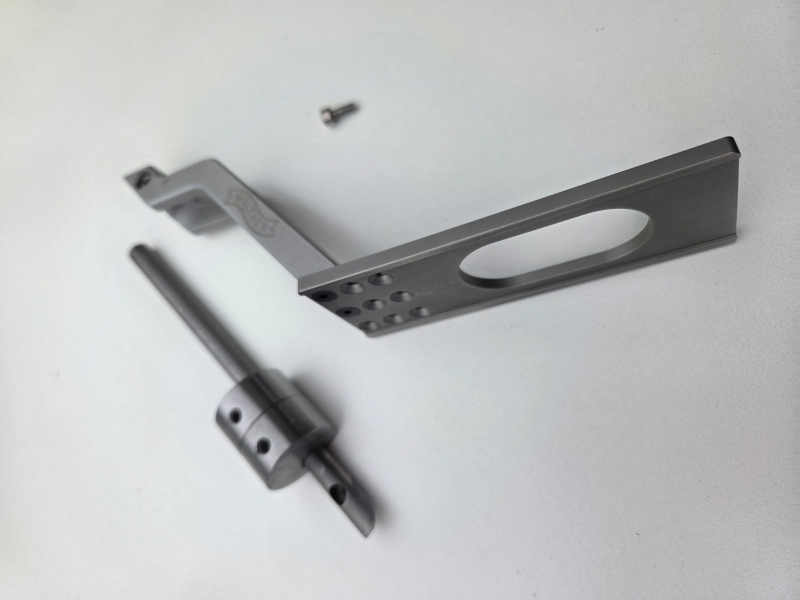 Die besondere Walther Innovation: Die Waffe bleibt auch bei verdrehtem oder verschwenktem 3D-Griff immer horizontal parallel zur Auflagestange! - Die Auflageplatte wird nicht am Griff befestigt sondern direkt am System.