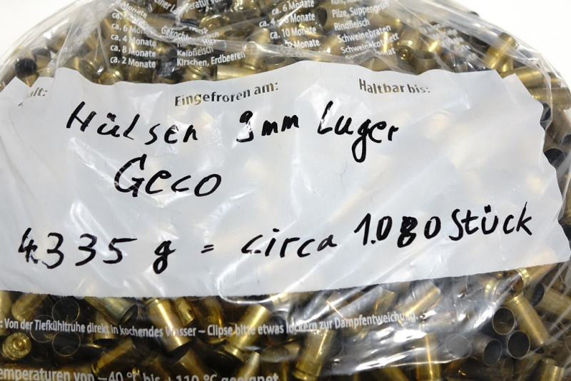 Hülsen Geco 9mm Luger einmal abgeschossen ca. 1080 Stck