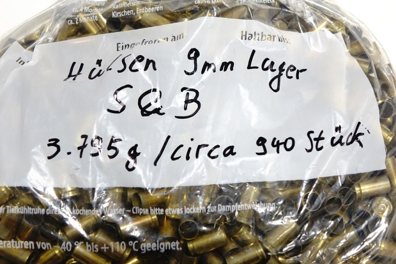 Hülsen S+B 9mm Luger einmal abgeschossen ca. 940 Stck